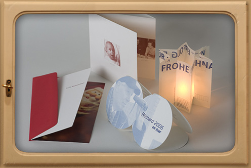 The explanationsof greeting andinvitations cardsin the margin show that Grüne Grützerealizes individuallycoordinated combi-nations with regard to photo and graphics.